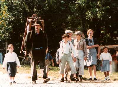 bal champêtre très dans le ton du bon vieux temps. Depuis 1995, la fête est consacrée chaque année à un thème principal: le travail du bois, le lait,... |